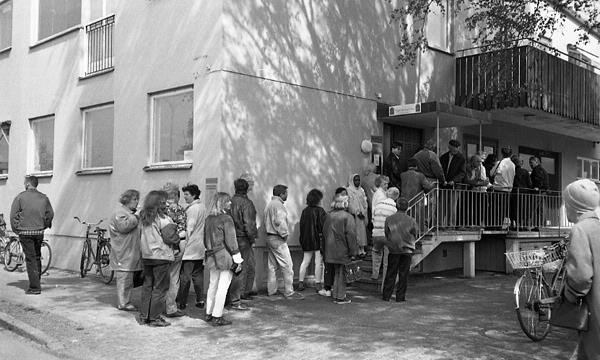 16. En väntande kö utanför Frälsningsarméns fyndlager, (FA-fyndet).