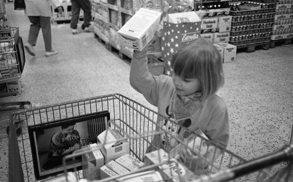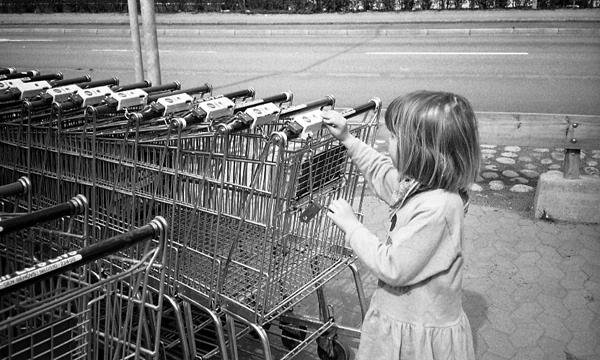 19. Dags att handla på LL-livs. Här tar Nathalié en kundvagn.