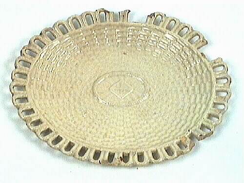 Ett ovalt fat med låga sluttande sidor och runt omkring en krans med avlånga, stående hål på rad. Invändigt flätmönstrad, med ett ovalt märke i centrum.
