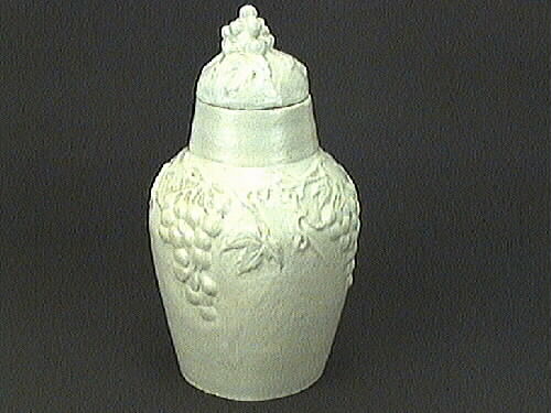 Urnan är glaserad, vitmålad utvändigt och hela locket är vitmålat. Under urnan och invändigt är den omålad.