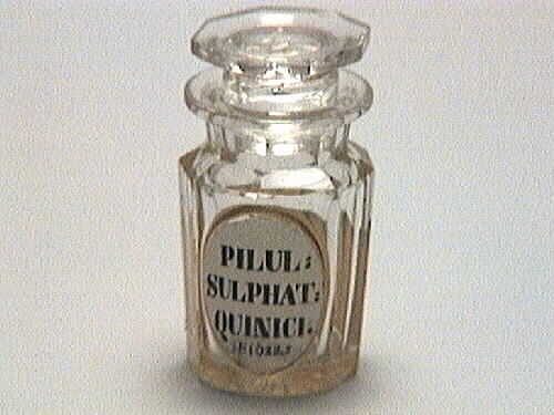 På den vita plattan står det: PILUL.SULPHAT. QUINICI.