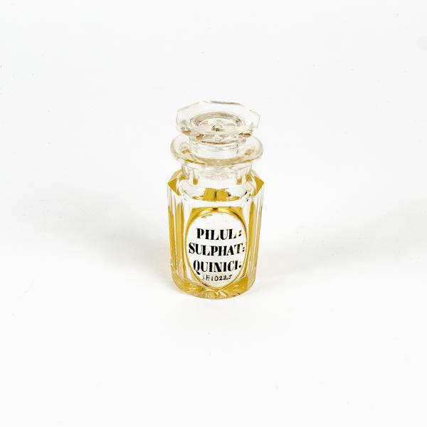 På den vita plattan står det: PILUL.SULPHAT. QUINICI.