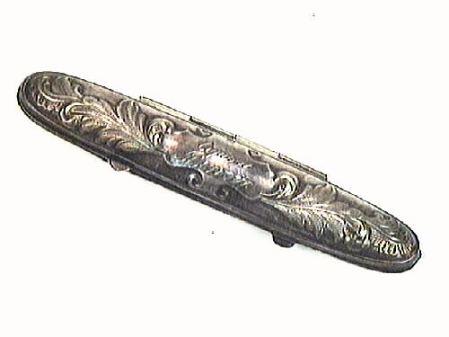 En cigarrask i nysilver. Asken är formad som en cigarr och gjord för en cigarr.