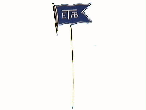 - Rockmärke från Thunbolaget. Märket har formen av en tvåuddig flagga. I mitten står ETAB i vitt på blå botten, ram i vitt och guld. Liten kort flaggstång i gulmetall. På baksidan nål för fäste på rockslaget. Stämplad: WESTINS, STOCKHOLM.
