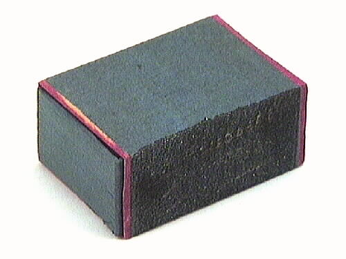 Askens ena smala långsida har plån. I asken finns stickor med rött plån.