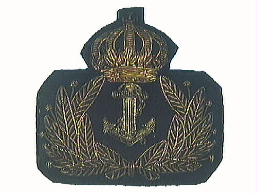 Mössmärke för officerare i Kungliga Flottan. En rektangulär fodrad ylleklädd bricka, med en krona överst. Mitt på märket är ett ankare i silvermetalltråd omgivet av två kvistar i guldmetalltråd. Över detta är en krona i guldmetalltråd.