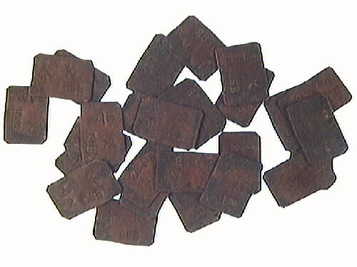 26 stycken rektangulära polletter, med följande stämpel: 1/2 K, LSB. K:et kan stå för kuppa eller kunna, vilket är volymmått. LSB kan eventuellt stå för Lidköpings Sockerbruksbolag. Poletterna används för att lösa ut någon vara i en bestämd affär. De utgör del av lön eller del av understöd.