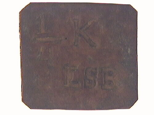1/4 K LSB. K:et kan betyda kuppa eller kunna, vilket är ett volymmått. LSB kan eventuellt stå för Lidköpings Sockerbruksbolag.
