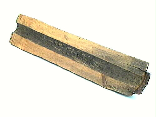 Vattenledningsrör, del av. Trästock, halv, med urgröpt skåra som är skodd med järn i ena kortänden. Järnet är rostigt. Stocken har varit den del av vattenledning som gick från Råda ås ner till Särnmarkska pumpen i Lidköping. Rören till Särnmarkska vattenledningen tillverkades av ca 700 st 5-6 meter långa furustammar, som märgborrades med en 3" borr, till en början för hand. Då detta arbete var tungt, gjordes en anordning så att botten kunde kopplas till en "hästvandring", vilket innebar en avsevärd lättnad och tidsbesparing. Rören sammanfogades med smidesjärnsmanschetter tillverkade av 2" x 1/4" hopetsat bandjärn, som utsmiddes till en egg i båda ändar.