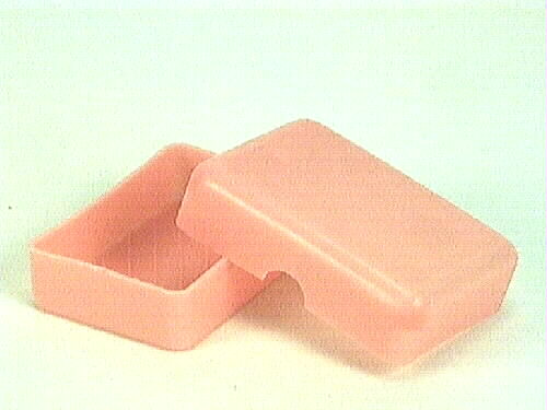 - Tvålask, rosa, med lock. Askens botten har 11 diagonala räfflor. Locket som har avrundade hörn har en tunn 1,5 mm bred dekorlinje som går runt ytan på ovansidan. Den löper 7 mm från kanten. På lockets insida är gjutet ett mönster med stjärnor. I mitten på detta finns en strålande, stilistisk, större stjärna. Lockets insida har i sina hörn avfasningar som fungerar stoppande mot askens överkant. Locket har två halvcirkelformiga urgröpningar, en på vardera sidans långsida i mitten, diametern är 15 mm. Tvålasken låg i låda nr 37 i förvaringsskåp inv nr 5M16-6395. Förvaringsskåpet stod på herravdelningen i Varmbadhuset, där verksamheten upphörde 1975-08-30. I samma låda låg ytterligare en tvålask, inv nr 5M15-6463.