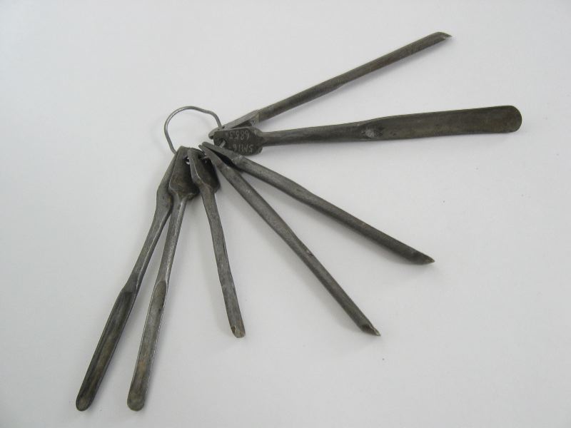Borr, bunt om sju stycken borr av varierande storlek. Det största är 148 mm långt och c:a 12 mm brett. Det minsta är 105 mm långt och c:a 7 mm brett.